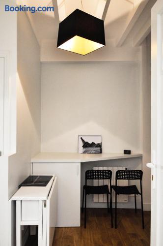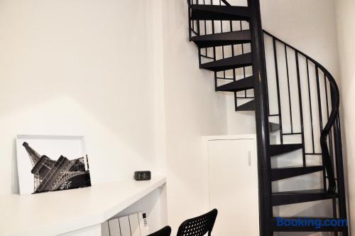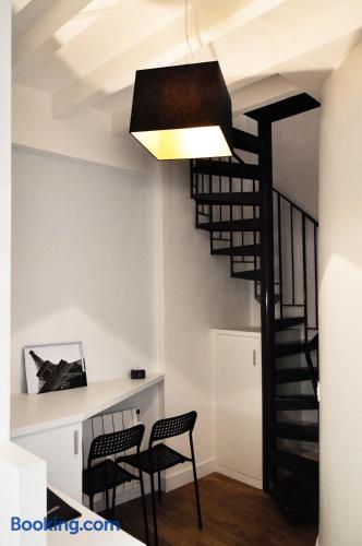 This apartment is perfect for short stays for up to two people. Due to a small spiral staircase, it is not recommended for elderly individuals with mobility issues, children, or travelers with large suitcases.