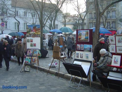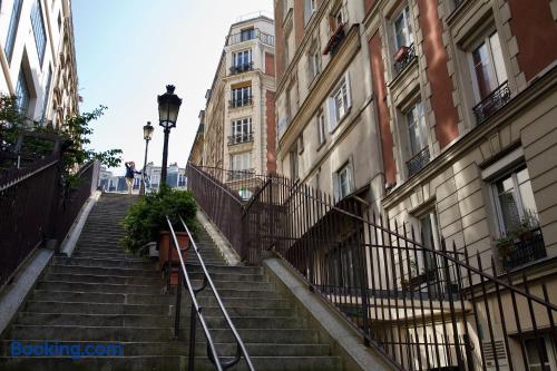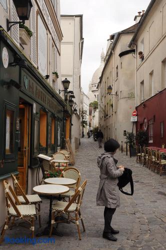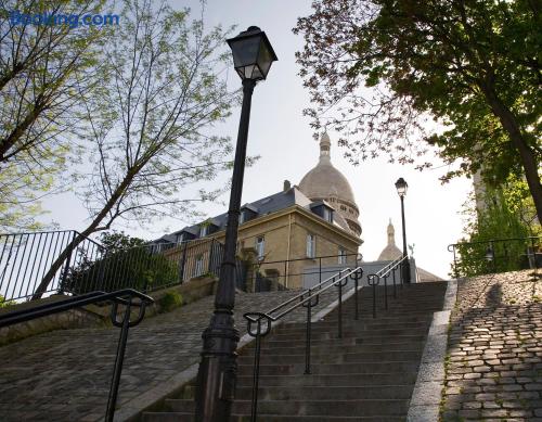 Nestled in the heart of the picturesque Montmartre village district in Paris, this apartment invites you to discover the authentic charm of the capital. Just a short walk away, the majestic Sacré-Cœur Basilica awaits, accessible via the iconic steps of the hill, offering breathtaking views of Paris. Wander through the cobblestone streets, explore artists' studios, and be charmed by the unique atmosphere of the many cafes, restaurants, and bars that dot this historic neighborhood. Staying with us ensures an experience of Paris in all its splendor.